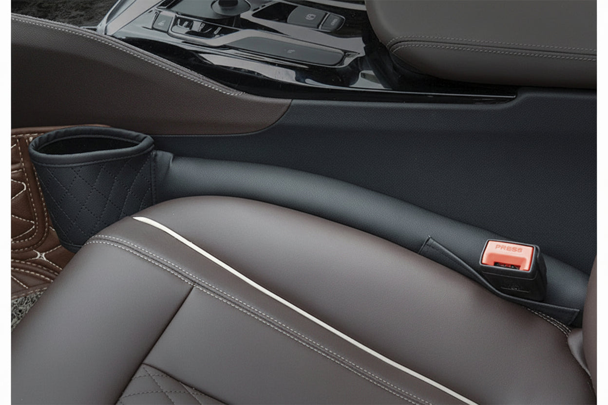 A premium seat gap filler designed to keep your essentials safe, visible, and within reach while you drive
